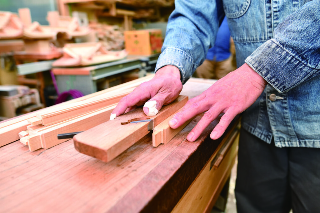 それぞれの職人が役割を分担し、一つひとつの技を積み重ねて完成します。